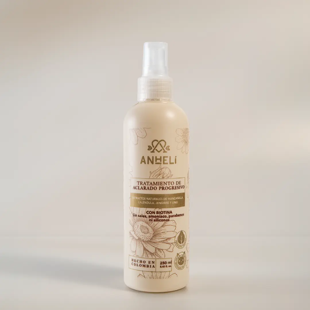 Aclara el cabello hasta 4 tonos de manera progresiva, además aporta brillo, disminuye el frizz y estimula el crecimiento gracias a su fórmula con manzanilla, caléndula, jengibre, lino y biotina.